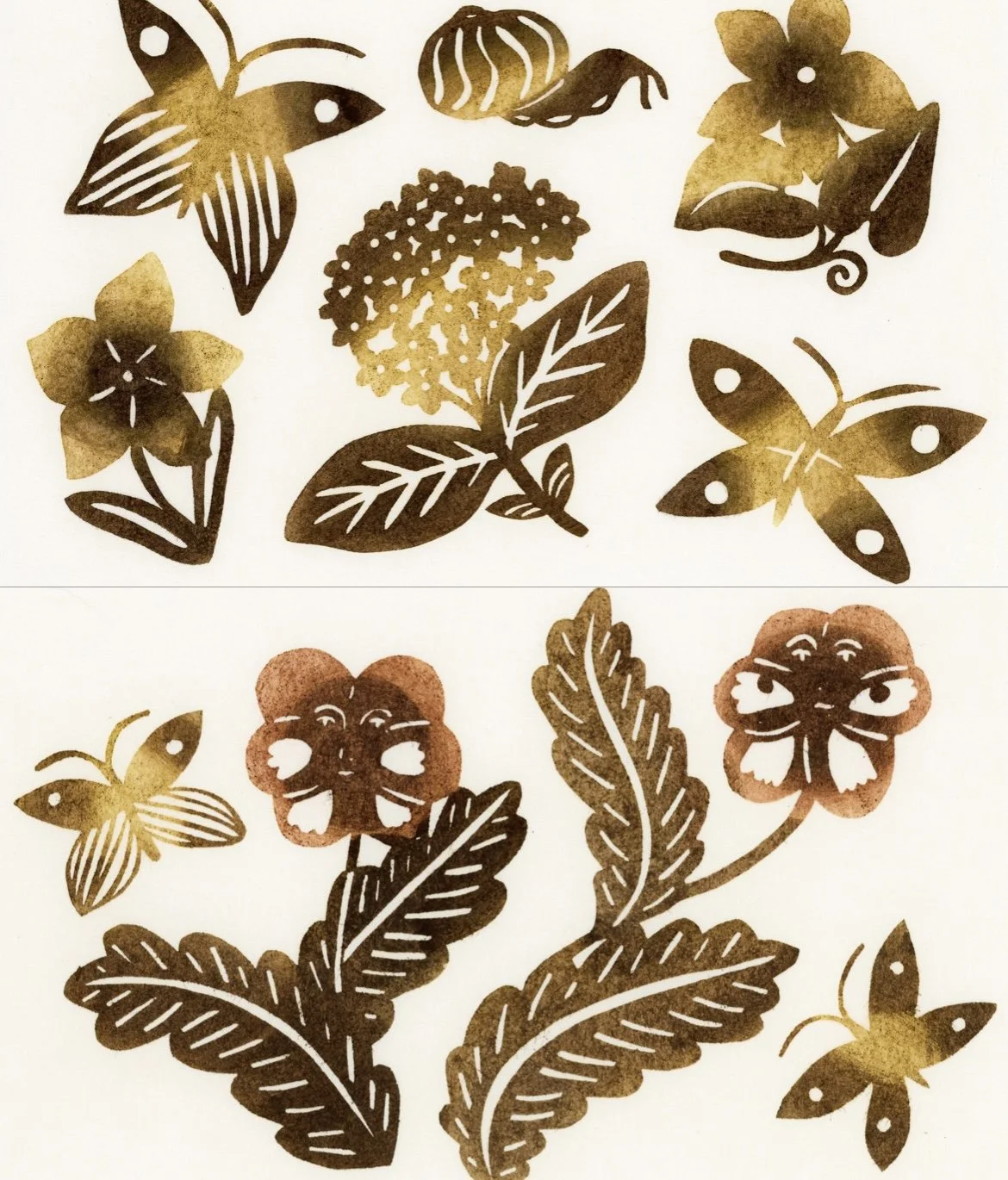 Printing rice paste through stencils- This process is especially suited for PAPER & will also work on ALL TYPES of natural fiber FABRICS.